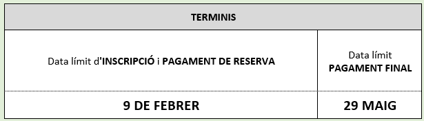 La inscripció, la reserva i el pagament final es poden realitzar a través de la web