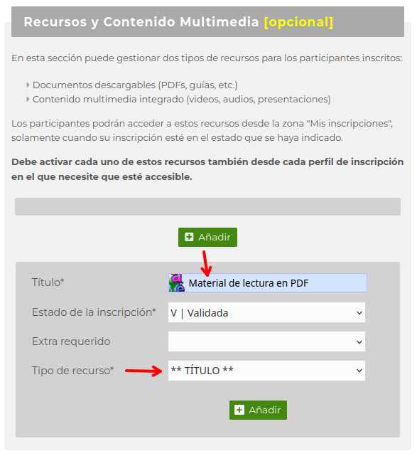 - Título (obligatorio): Nombre descriptivo del recurso